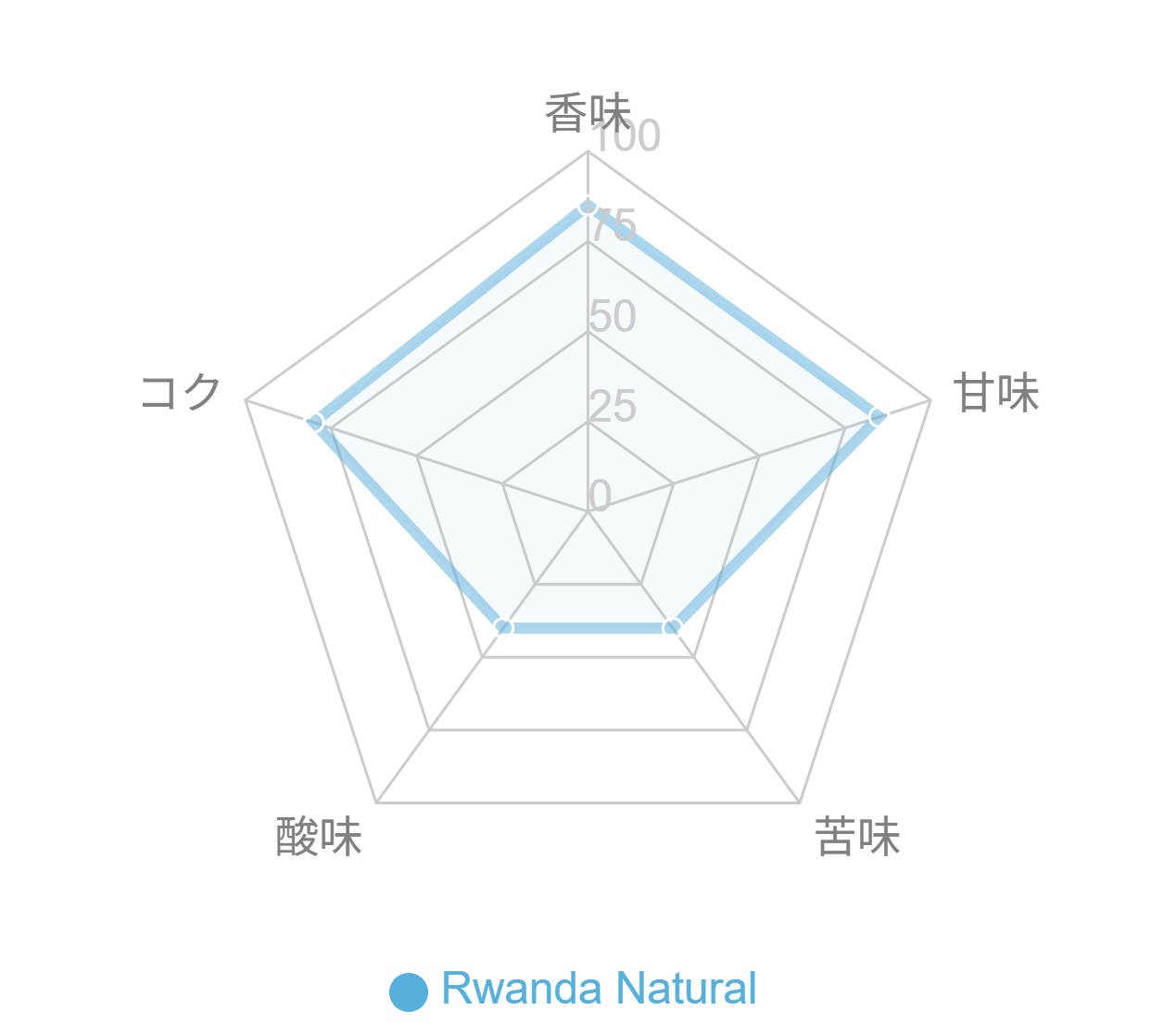 アフリカ・ルワンダの西部州に位置するカロンギ郡、標高1,700mを超える高地で女性生産者たちが手掛ける「シェンダジュル」。ナチュラル製法特有の芳醇な風味を活かしつつ、中深煎りに仕上げることで完熟果実の甘みを凝縮させました。